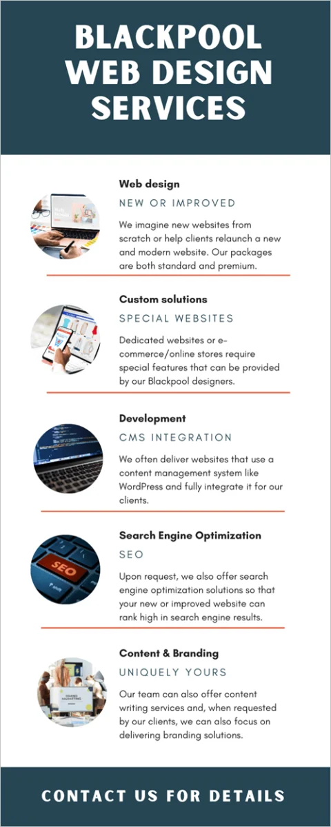 | Blackpool web design services | Complete services that include website design, SEO, content, and others. |